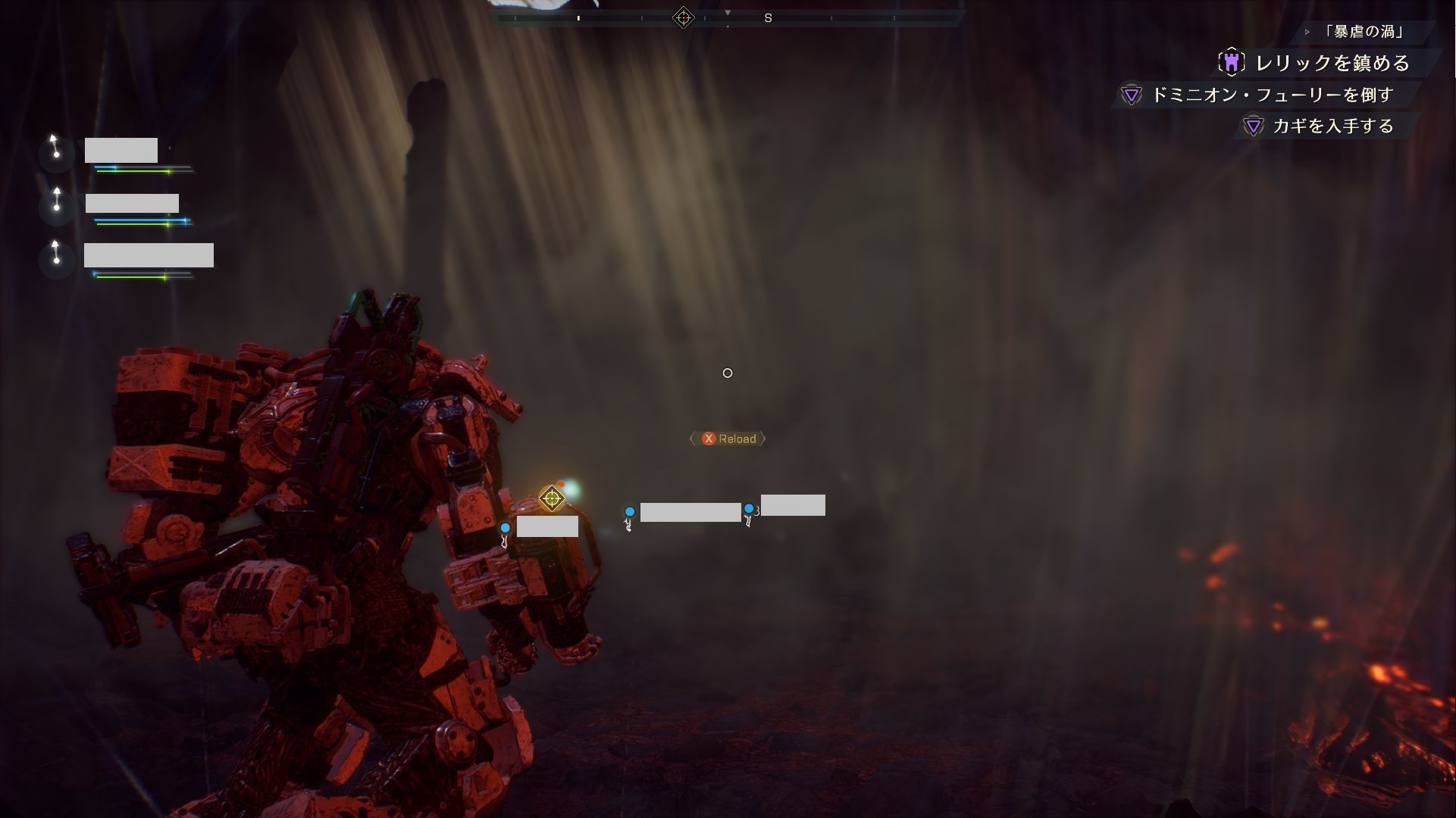 結構な頻度で遭遇するバグです。ストロングホールドに出撃し、ある程度クエストが進行すると後戻りできないようにマップに壁が出現するのですが、「味方が取り残されているにも関わらず壁が発生し、進行不可となる」という症状が結構な頻度で発生しています