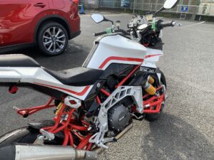 バイクなので雨の中の走行も考慮されているはずなので洗車しても大丈夫なはずだけど、イタリア車 & bimotaということもありなんとなく壊れそうなイメージが・・・