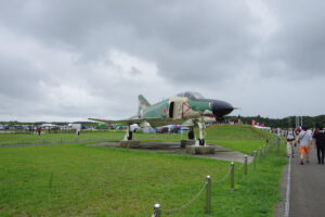 会場が空港ということもあり入り口では戦闘機がお出迎え。