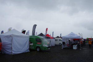 が、ちょうど自分が到着したタイミングで雨がかなり降ってきてしまい、落ち着いて会場見学ができなくなっため退散。